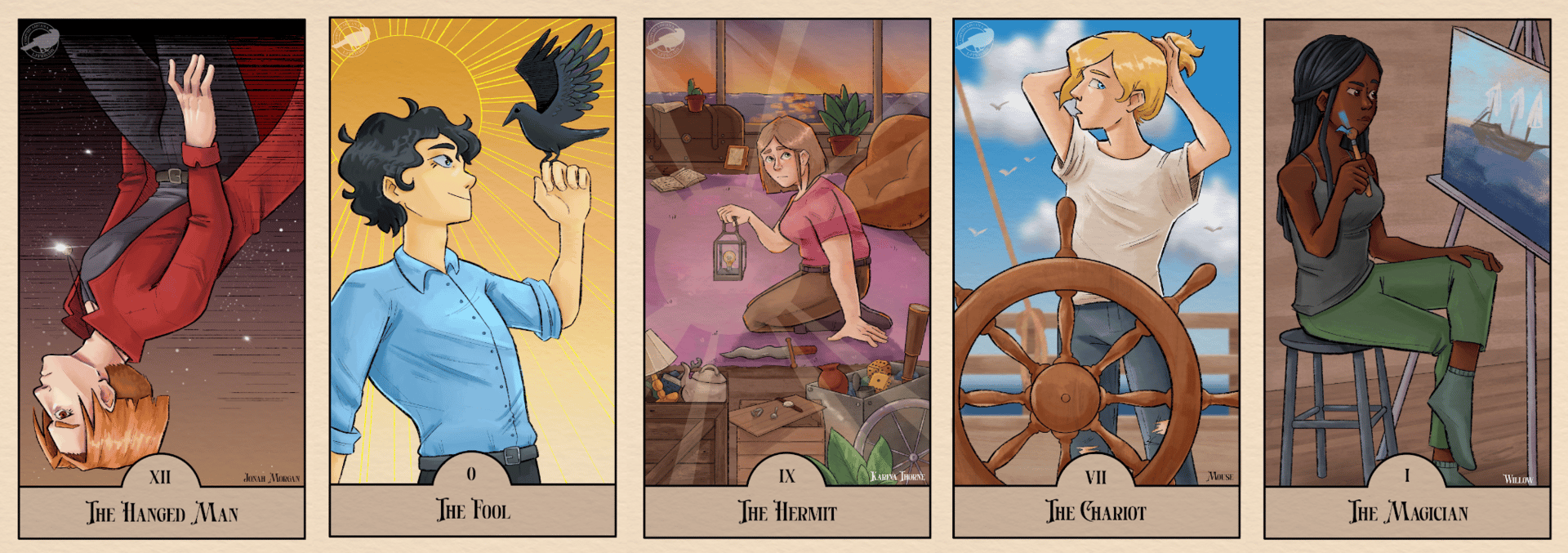 After my freelance work wrapped up for the year, I set out to start a personal project: designing Tarot cards based on the characters in my seafaring fantasy series, The Divine Archive. Since November, I have completed five cards!