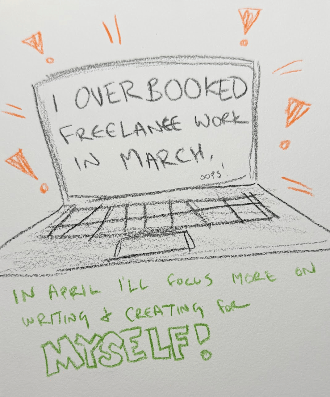 I overbooked freelance work in March. Oops! IN April I’ll focus on writing & creating for MYSELF!